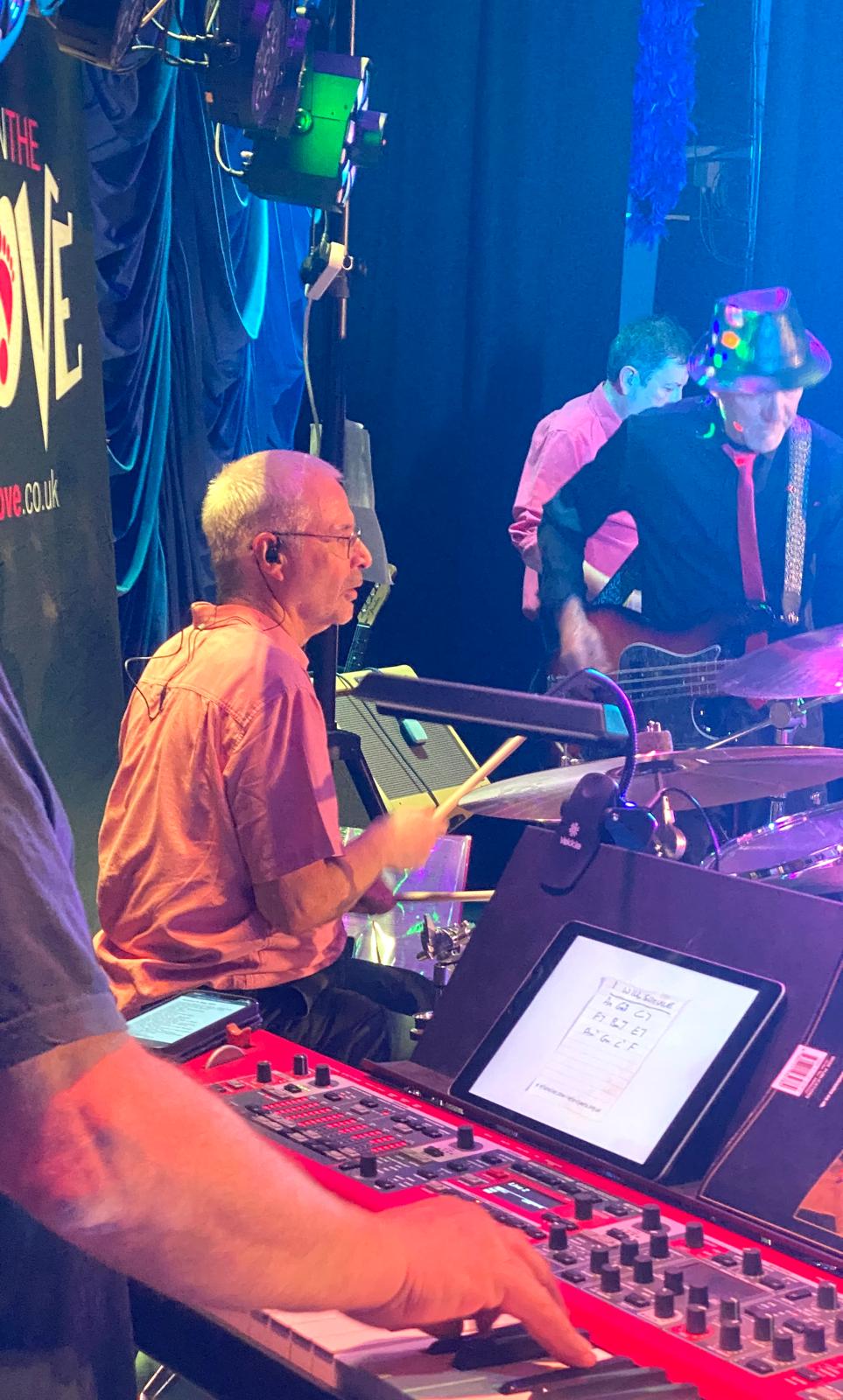 In the days of three terrestrial TV channels, Dave was watching “Parkinson” on a Saturday night. Buddy Rich was on. He played Love For Sale. Dave was electrified. He did the obvious thing and joined a punk band!! More recently he has played as dep, in scratch bands and in longer running projects. He’s played covers, originals, rock, jazz, blues & funk. He has played for love and played for money and is now looking forward to playing for Free (we’ll see if he notices that one).